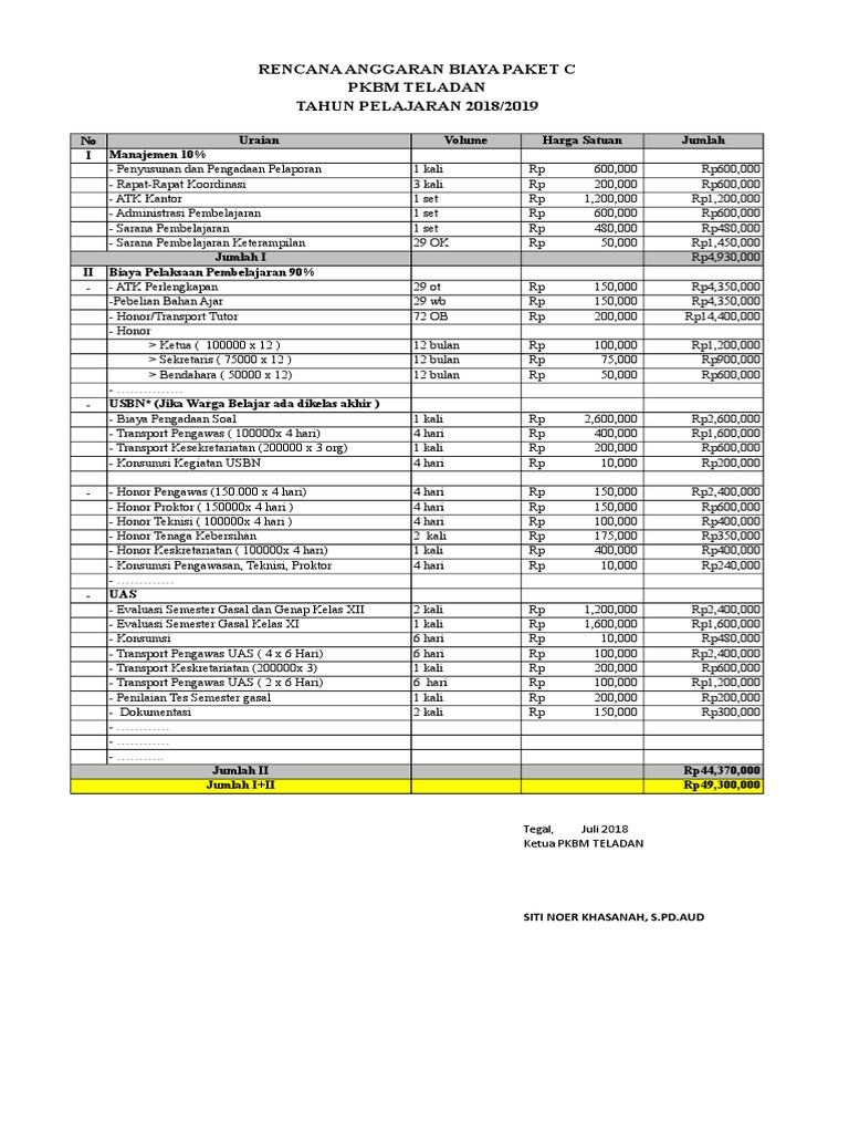 Contoh format rab pembangunan dan pengembangan paud/tk (format rab desa).